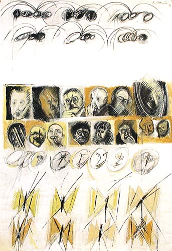 METAMORFOSI DEL BRUCO, Tecnica mista su carta, 100x150 cm, 2003
